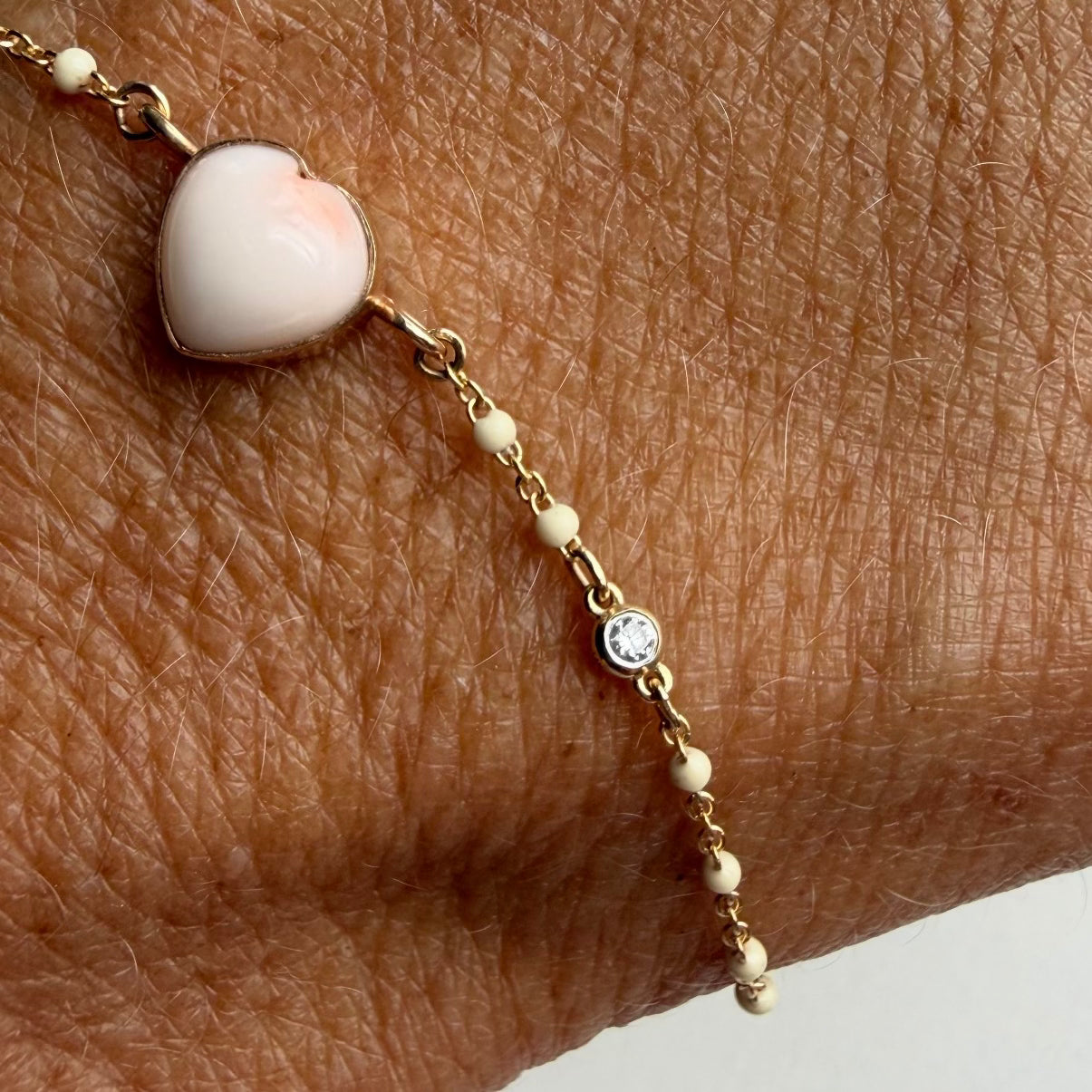 Angel skin heart coral bracelet with diamond accent