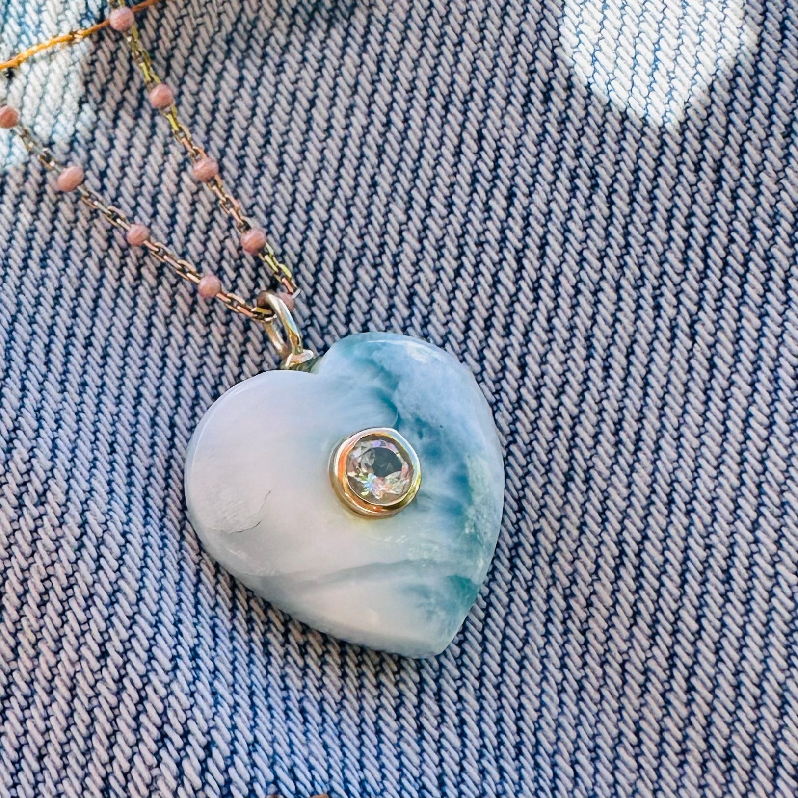 Blue larimar heart shape 15 mm with clear blue topaz inlay.